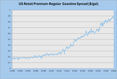 The octane incentive: A rising tide. The octane incentive has steadily climbed over the past decade, driven by: