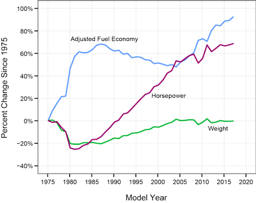 - The Light-Duty Automotive Technology, Carbon Dioxide Emissions, and Fuel Economy Trends: 1975-2017: https://www.epa.gov/fuel-economy-trends/highlights-co2-and-fuel-economy-trends