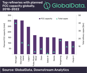 Analysis of planned Fluid Catalytic Cracking (FCC) unit capacity of refineries shows that the Ratnagiri refinery in India has the highest planned FCC capacity globally, with 312 Mbpd during 2018 to 2022. China and Nigeria follow with 304 Mbpd and 247 Mbpd, respectively, according to GlobalData, a leading data and analytics company.
