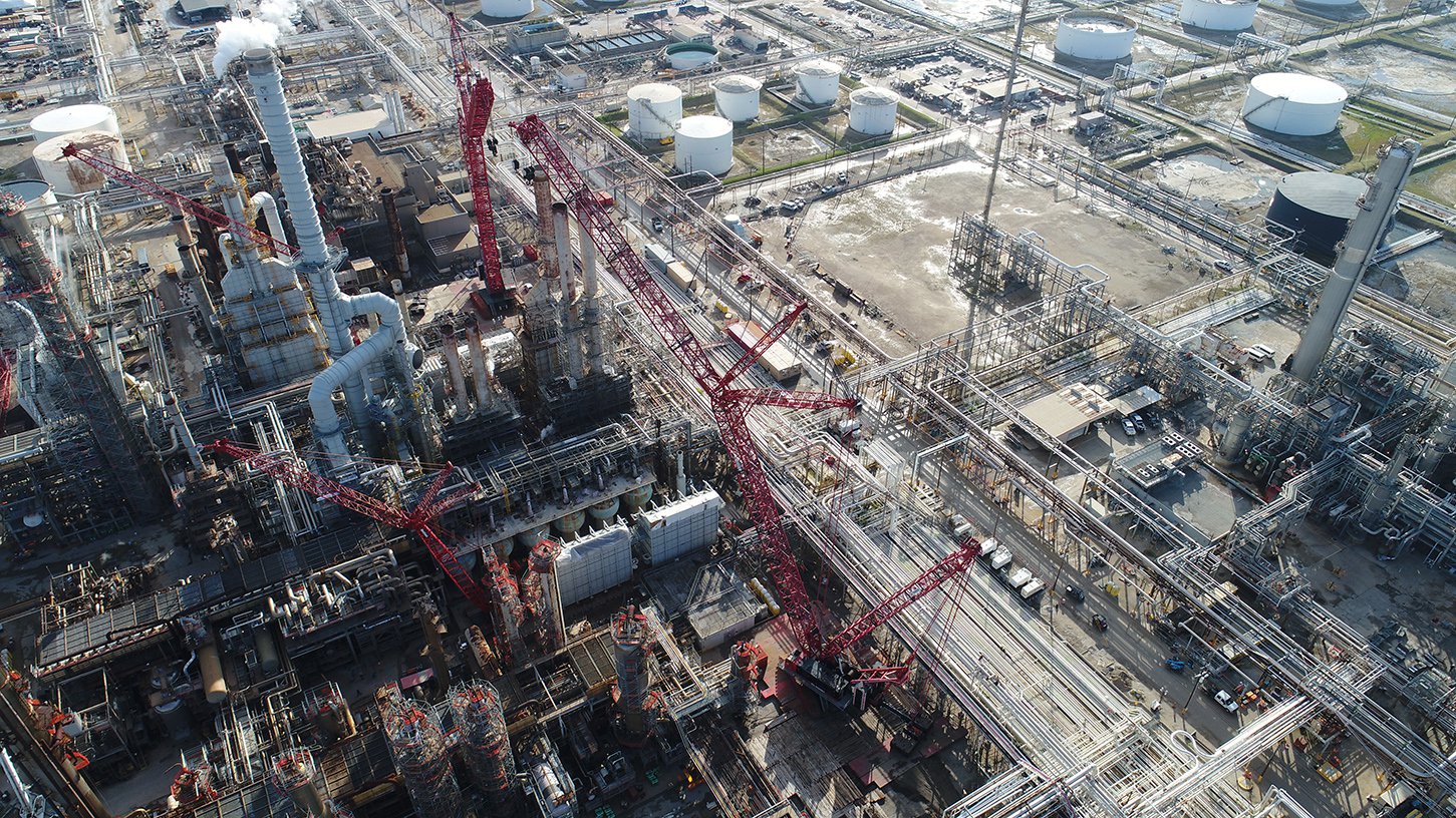 The east CC8800 jib was installed while suspended in the air by two cranes while the west CC8800 jib and the main boom were assembled mid-air above inactive pipe racks. Once completed, the two CC8800 cranes were able to realize more than 50 critical lifts over several months.