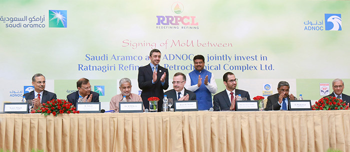 The agreement defines the principles of the joint strategic cooperation between Saudi Aramco and ADNOC to jointly build, own and operate the complex in collaboration with a consortium of Indian national oil companies currently consisting of Indian Oil Corporation Ltd, Bharat Petroleum Corporation Ltd, and Hindustan Petroleum Corporation Ltd. Saudi Aramco and ADNOC will jointly own 50% of the new joint venture Company Ratnagiri Refining and Petrochemical Company Ltd, with the remaining 50% owned by the Indian Consortium.