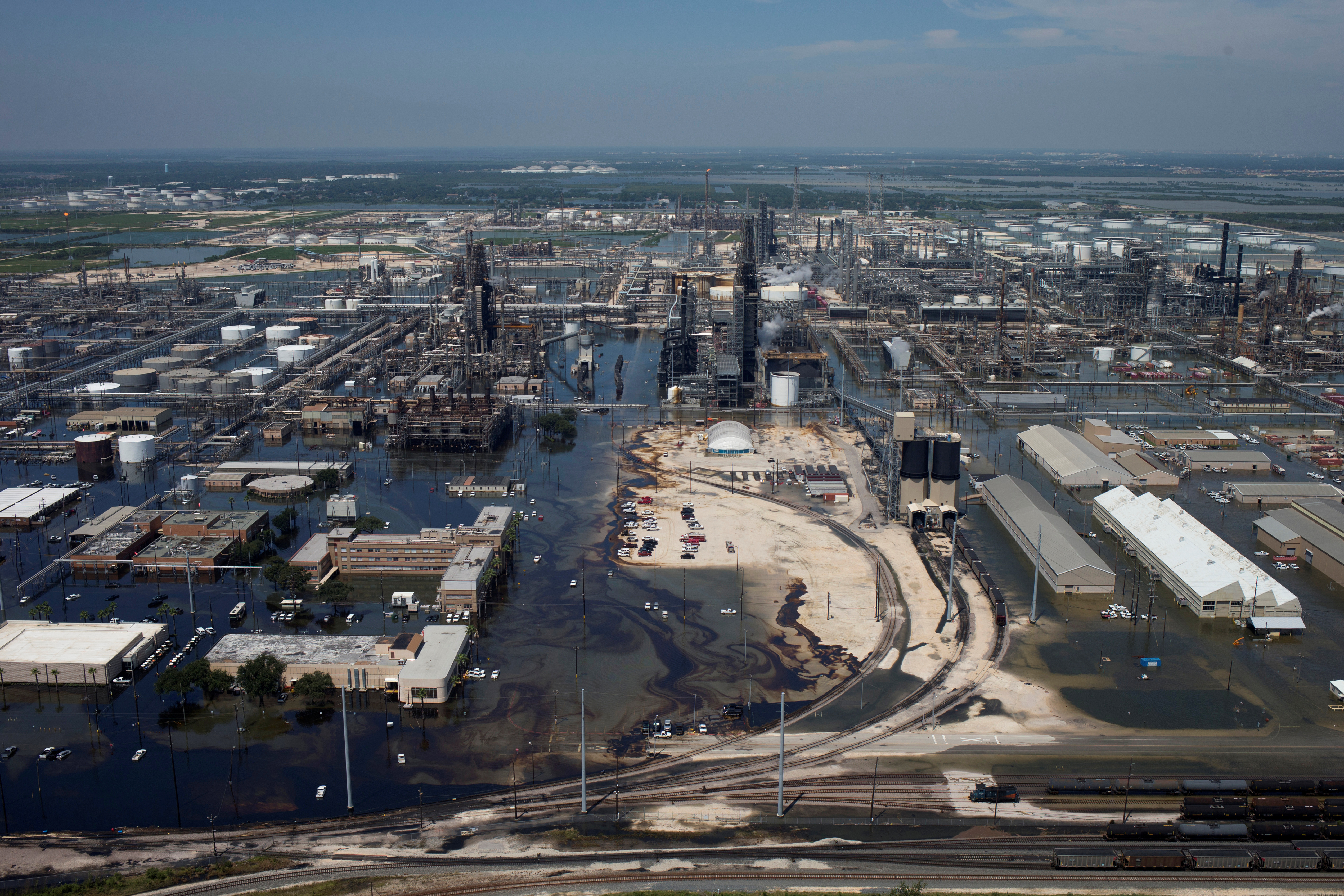 Refiners and other industries are advocating for a storm surge barrier to prevent future storms from pushing water in nearby Galveston Bay and flood refining centers in Texas City,