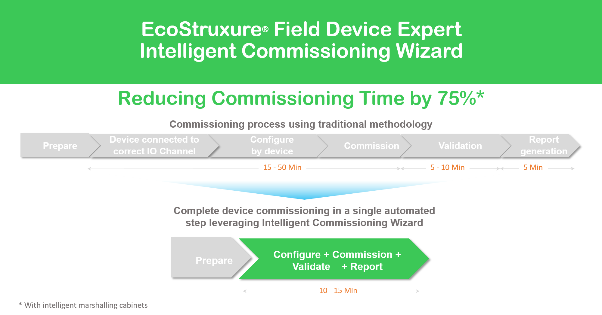 - Intelligent Commissioning Wizard enables faster time to production and reduced commissioning effort and time. With Intelligent Commissioning Wizard, engineers can commission devices 24/7 with no additional overtime cost.