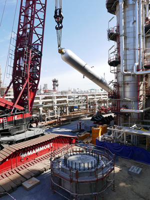 The team tailed the reactor by attaching the base of the column to the reconfigured SPMTs used in the port transit using an in-house tailing frame. This allowed the 60-meter boom to successfully up-end the column and assist the CEPSA mechanical team with its alignment and installation. Rafael concludes: “Despite the engineering challenges, we completed the transport and installation process within the schedule. As a result, the overall plant upgrade was not impacted, ensuring to upgrade stayed on track with minimal downtime for the plant.”