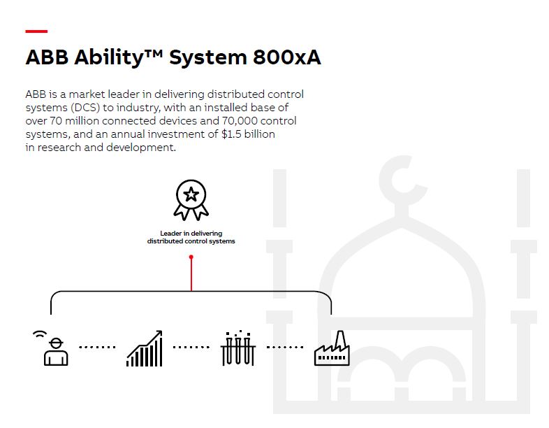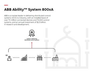 ABB is a market leader in delivering distributed control systems (DCS) to industry, with an installed base of over 70 million connected devices and 70,000 control systems, and an annual investment of $1.5 billion in research and development. Since its introduction in 2004, ABB Ability™ System 800xA has been sold to more than 10,000 systems, including over 45,000 controllers, and 40,000 + operator stations in over 100 countries.