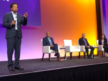 Wednesday morning's plenary panel (left to right): Rashesh Mody, Head of Monitoring and Control; Amish Sabharwal, Global Head of Engineering, AVEVA; Harpreet Gulati, Head of Planning and Operations Business Unit, AVEVA; and Kim Custeau, Global Asset Performance Management Lead, AVEVA.