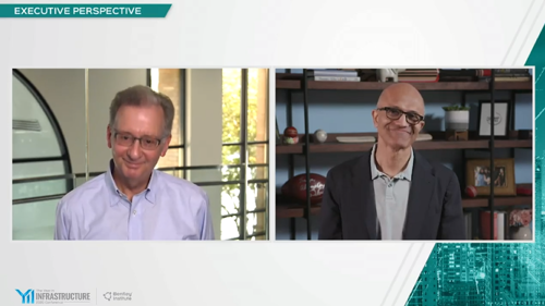 Executive perspective. Following his opening remarks, Mr. Bentley was pleased to welcome Satya Nadella, CEO of Microsoft, for the “Executive Perspective: Digital Twins for Infrastructure Resilience,” an interactive discussion on the challenges we face in infrastructure and how leading technology vendors will collaborate to meet those challenges through digital innovation.