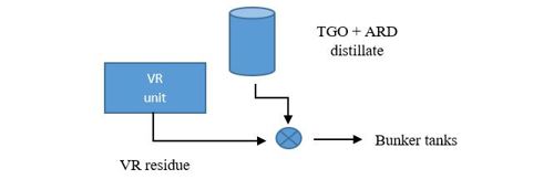Vacuum residue (VR) from the VDU can be blended with low-sulfur streams to produce the required product, keeping that resulting blend aromaticity above 40% by controlling the blend ratio and order of blending. TGO dropping in vacuum tower bottoms will help to achieve the required aromaticity. With VR blended with distillate, the final blending aromaticity could drop below 40% and can lead to sludging, depending on the blend ratio and the order of blending.