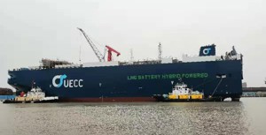 UECC floats first of three LNG battery hybrid PCTCs