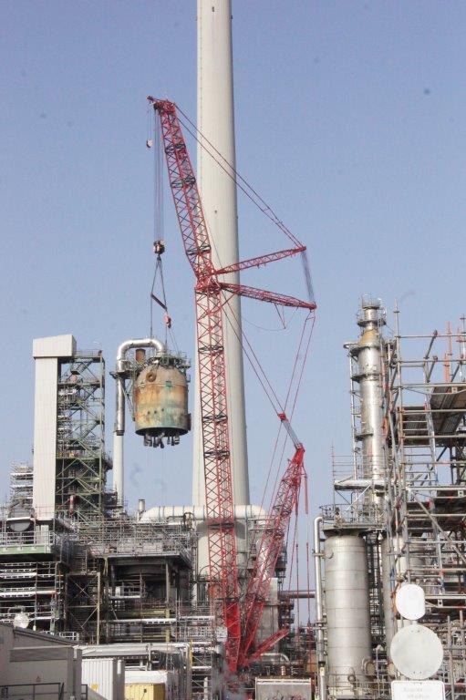 Due to the confined conditions on site, the crawler crane had to be assembled before the start of the turnaround, as the only access road to the FCC plant could not be closed. However, sudden wintry weather delayed the erection of the crane. Nevertheless, through joint efforts on site, the deadline for lift standby was met.