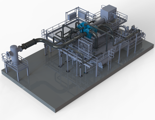 In addition to the fuel production, an essential building block of Shell’s endeavor is the carbon capture and pipeline transport of CO2: A by-product from different plant processes, including blue hydrogen, the CO2 will be compressed to a pressure of 42.5 bar by the Atlas Copco Gas and Process’ five-stage turbocompressor. The machine is designed to compress 43.5 t/h.