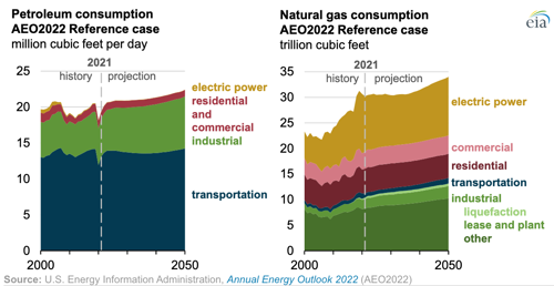 The EIA projects that U.S. consumption of natural gas will keep growing, primarily driven by expectations that natural gas prices will remain low compared with historical levels. Starting in the early 2020s, the U.S. industrial sector has been the largest consumer of natural gas, primarily by the chemical industries that use natural gas as a feedstock and by increased heat-and-power consumption across multiple industries. Specifically, the bulk chemicals industry is the largest industrial energy user throughout the projection period, and it contributes the most to the growth in energy consumption in the industrial sector as a whole.