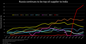 Russia is the top supplier to India, responsible for about 35% of India's overall supplies.