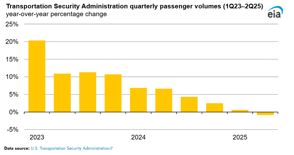 Passenger volumes, as measured by the U.S. Transportation Security Administration (TSA), declined in the second quarter of 2025 compared with the previous year for the first time since the pandemic amid economic uncertainty.