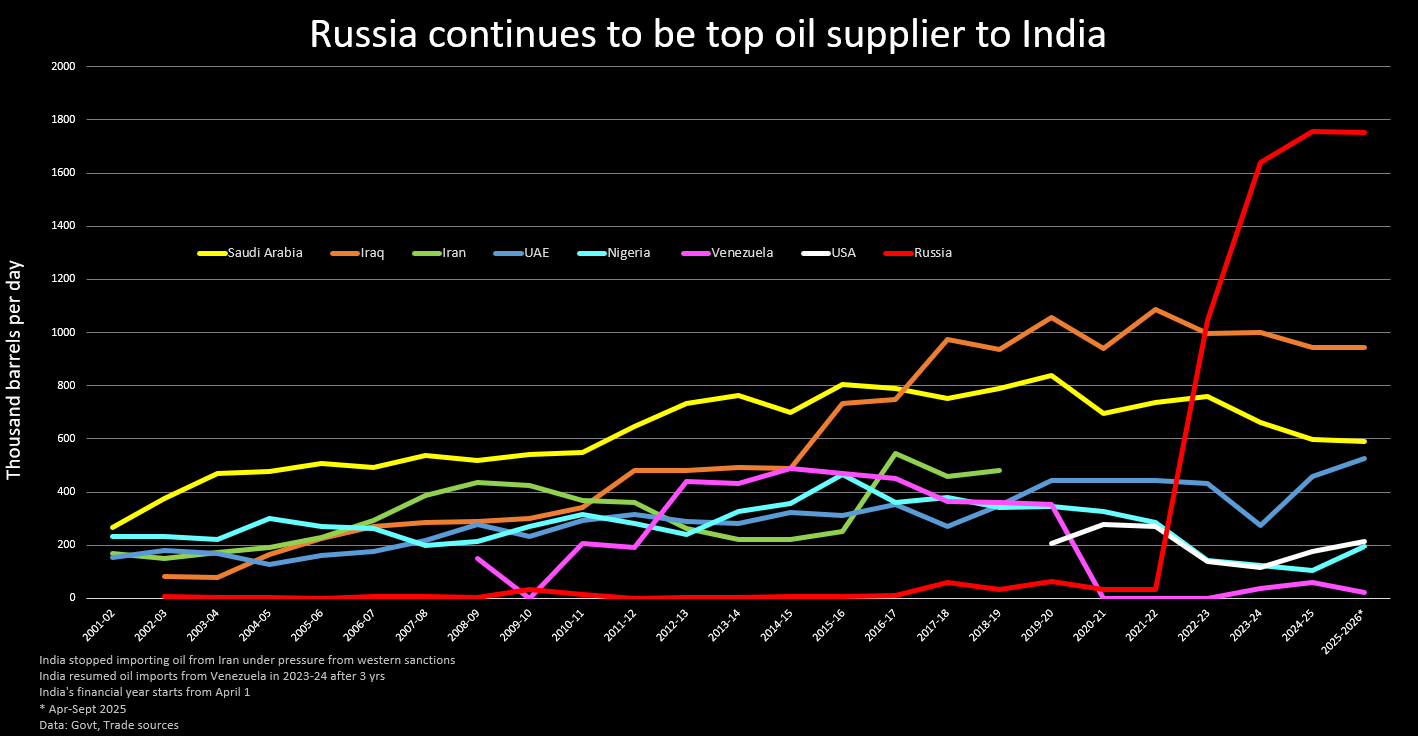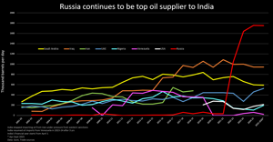 - Russia remains India's top source of oil imports
