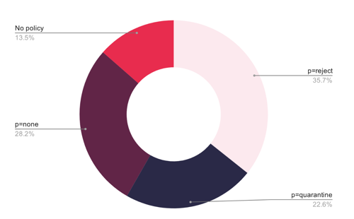 • Only 6% (17 companies) have no DMARC policy