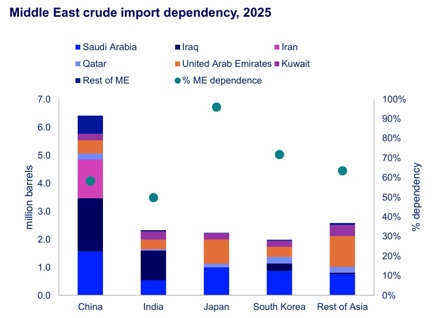 - Asian refineries face severe supply disruption as region's 65% dependency on Middle East crude is tested