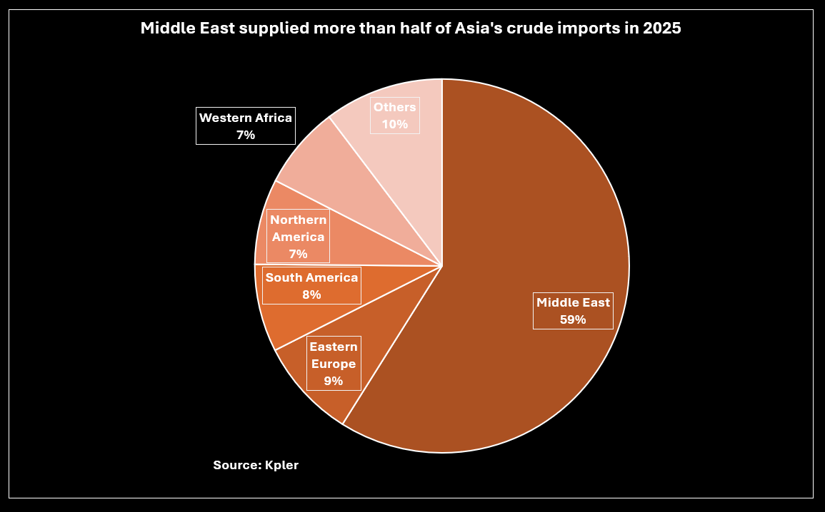 Asia, which accounts for 37% of global refining output and ordinarily sources two-thirds of its crude from the Middle East, has been hardest-hit by the closure of the Strait of Hormuz, with run cuts at refiners in the region exacerbating tight fuel supply and keeping prices elevated.